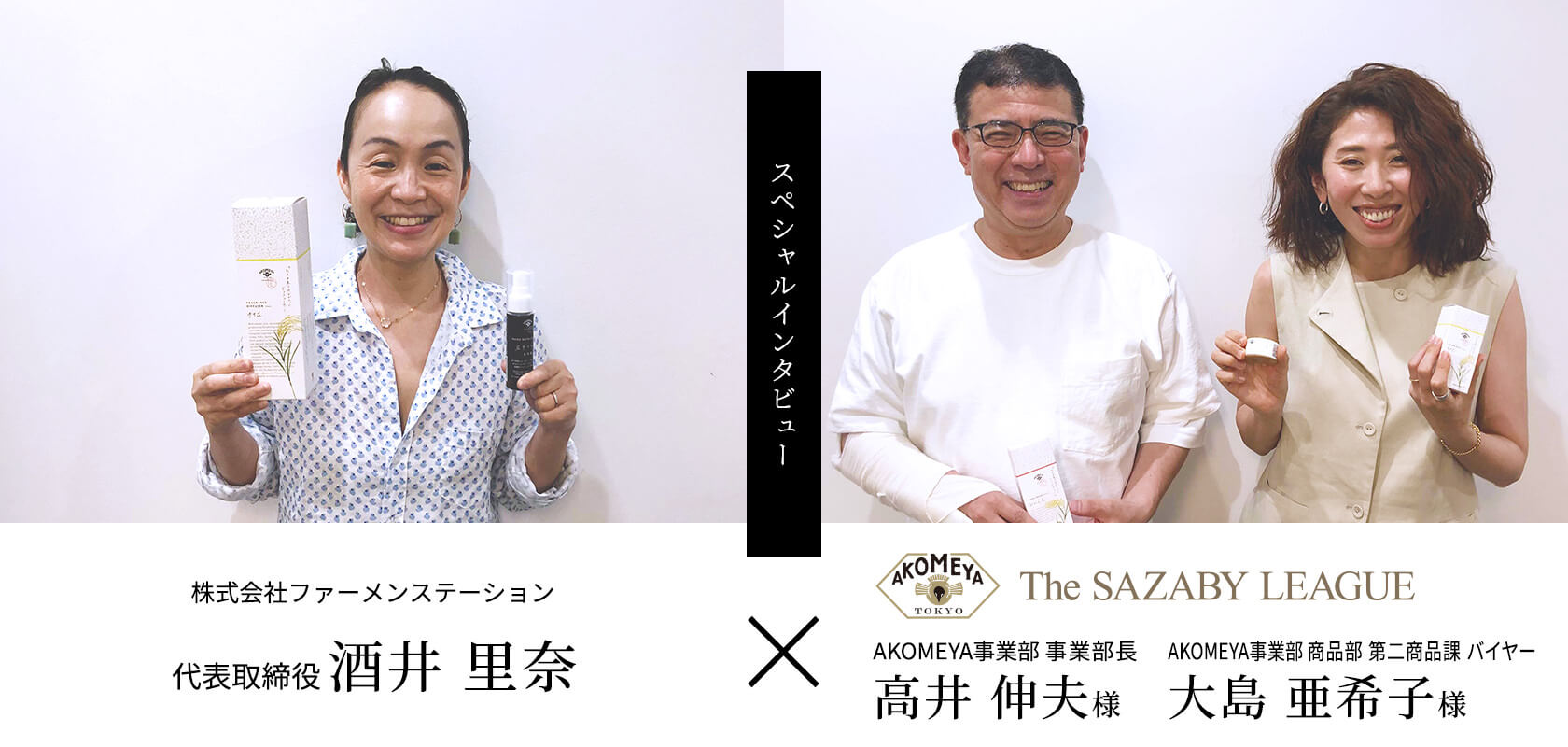 AKOMEYA様に、ファーメンステーションが創業当初から大切にしてきた休耕田という「未利用資源」を再生し収穫したお米の活用に共感いただき、初の外部パートナーとしてお米を原材料とした商品でコラボレーションが実現しました。両社が生産者さんや原料について共通の思いを持ちながら誕生した美容商品の背景にあるストーリーや、担当者の想いについてお話を伺いました。