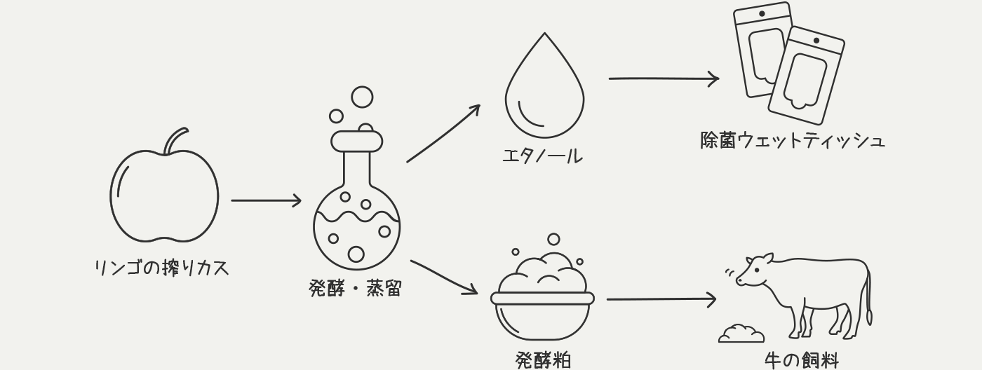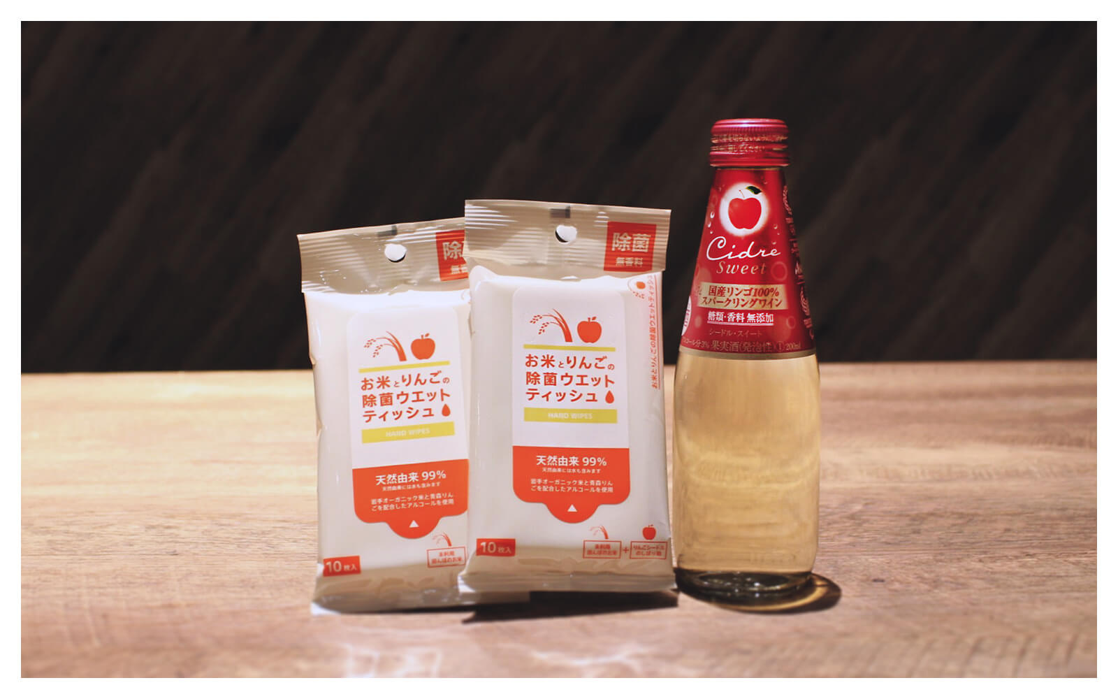 まず第一弾は、御社の「シードル」を造る工程から出るりんごの搾り残さからエタノールを作り、それを用いたウエットティッシュの商品化でしたが、どのようなきっかけでこの取り組みが始まりましたか?