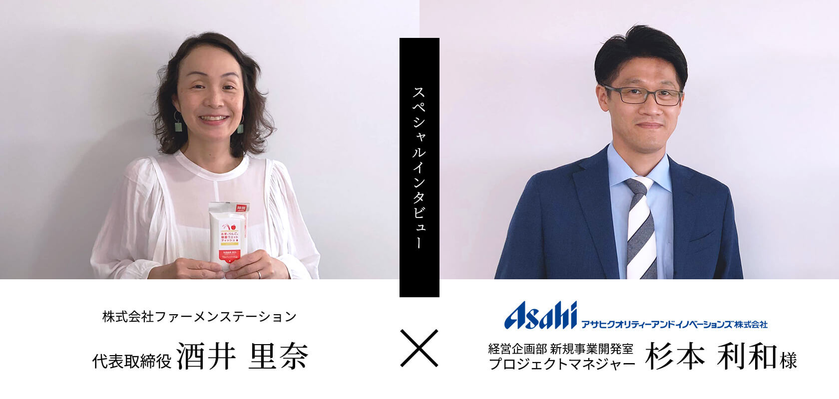 アサヒクオリティアンドイノベーションズ様が、ファーメンステーションと協業し、アサヒグループ事業で製造販売するりんごのお酒「シードル」の醸造過程で出るりんごの搾り残さからエタノールへとアップサイクルし、JR東日本様も含めた三社で「お米とりんごの除菌ウエットティッシュ」を開発・発売するに至った経緯や事業化に当たっての取り組みをお聞きしました。