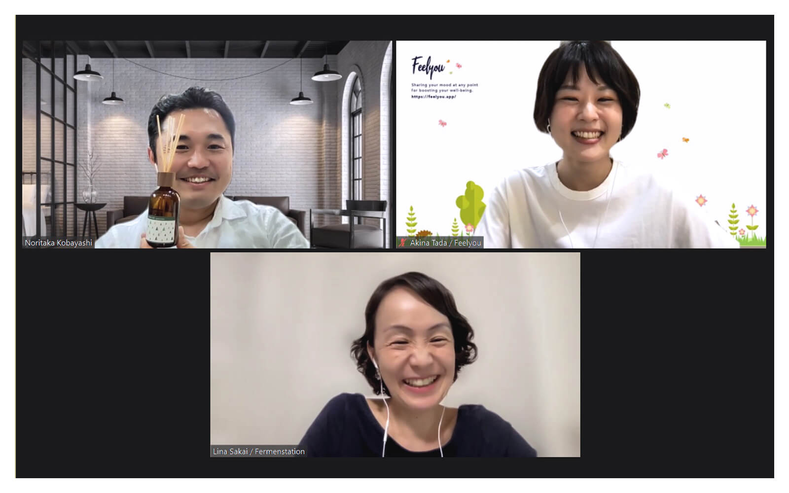 弊社は2021年1月にFUNDINNOという株式投資型クラウドファンディングのプラットフォームを通じて、多くの方からご支援を頂きました。たくさんの応援を頂いたので実際に商品を作り始めることになったのですが、ものづくりが初めてだった私たちにとって、最初は何も分からない状況でした。ですが、「Feelyou」アプリを使ってくださっているお客様の感情に合わせて、楽しい気分の時にはもっとハッピーになり、悲しい時には癒してあげられるようなものを作りたいという軸はありましたので、そのような観点で、お花、アロマオイル、入浴剤やハーブティーなど色々な選択肢を考え、OEMメーカーを探していました。
